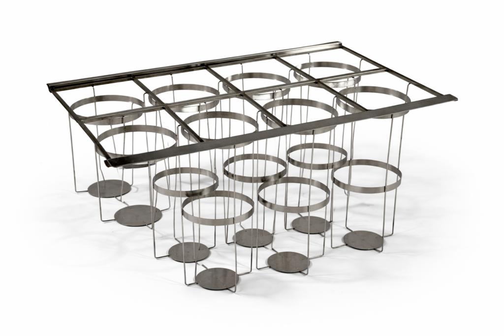 Stelaż w całości wykonany jest ze stali nierdzewnej AISI 304, co gwarantuje wysoką trwałość, pełną higienę oraz odporność na korozję. W przeciwieństwie do wielu innych urządzeń nie stosujemy drutu czarnego powlekanego.